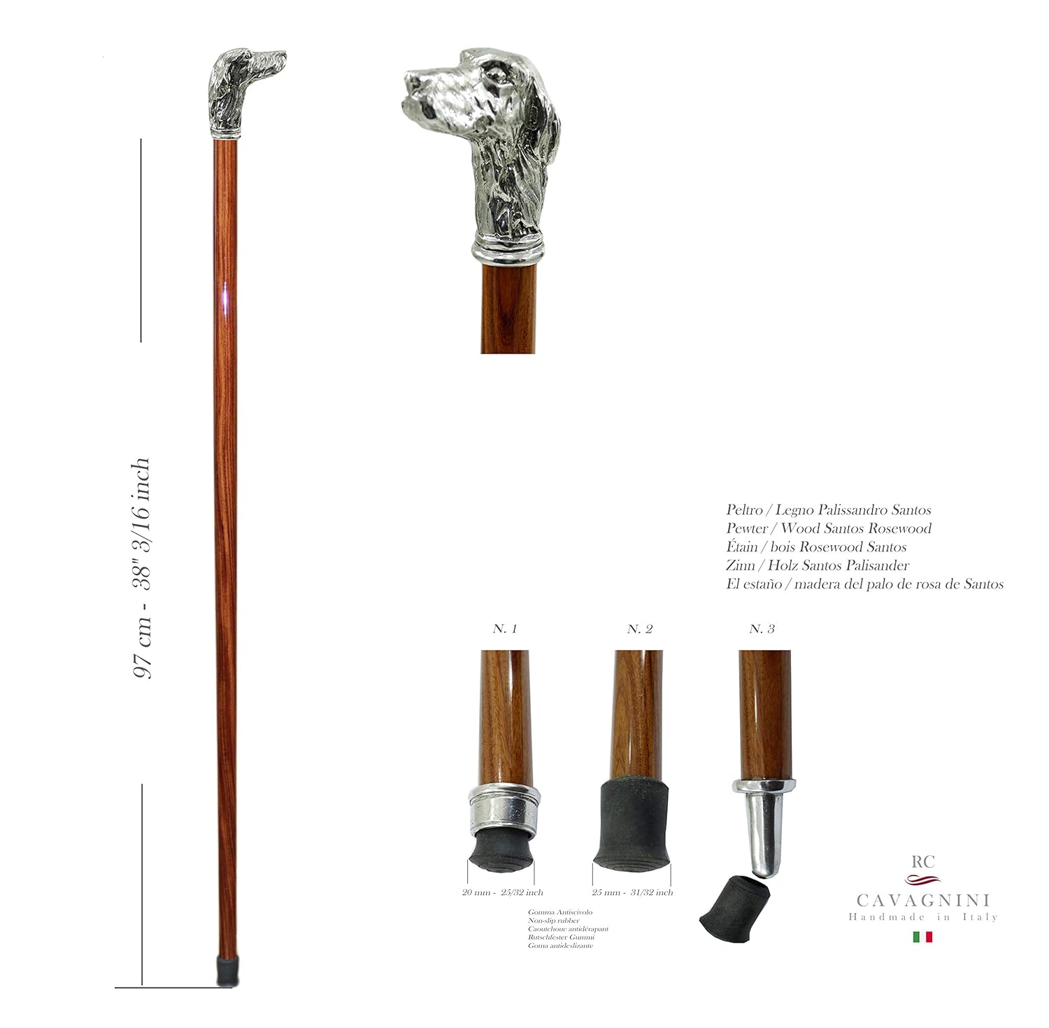Canne en bois et en étain massif longueur personnalisée, produites et canne marche élégant, chien greyhound pour la cérémonie bois et métal personnalisé même coût, cavagnini fabriqué en italie de la.